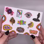 4" x 6" sticker sheet with 10 matte mini stickers. Made from waterproof vinyl.